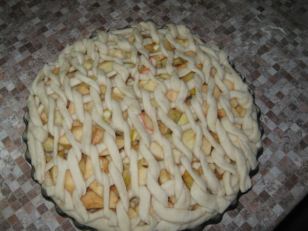 Тесто по рецепту, только ингредиентов в 2 раза меньше. Делим на 2 части, 1 часть выкладываем в форму