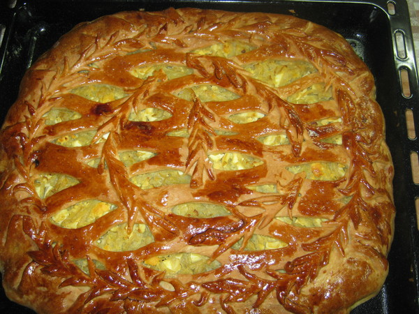 смазываем яичным желтком и в разогретую до 180гр духовку до золотистого цвета