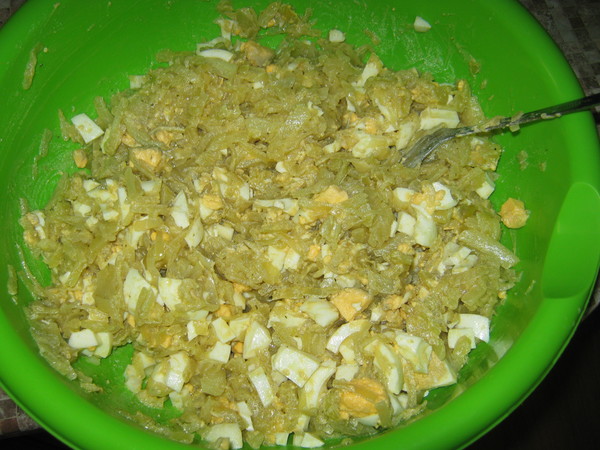я приготовила начинку с яйцом, предварительно сварив 10 яиц