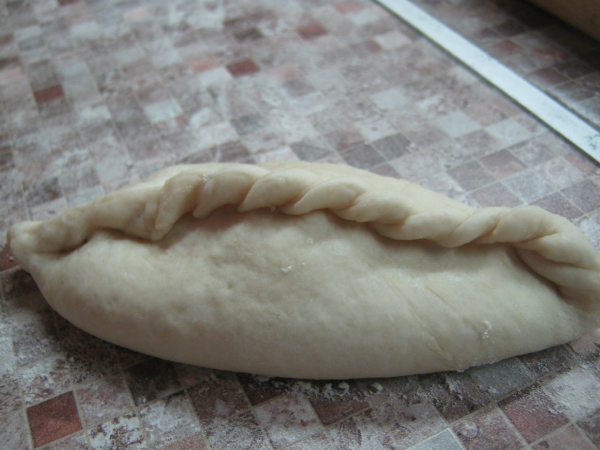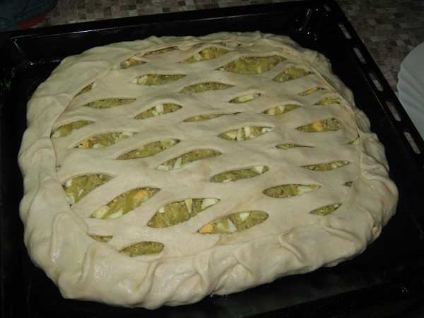 Раскатываем тесто и выкладываем на смазанный подсолнечным маслом протвень или бумагу для выпечки