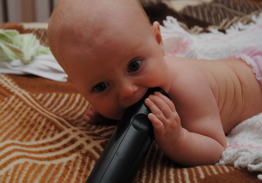 Такая самостоятельная, смотрю, ложку держит, пульт грызет )))))))
