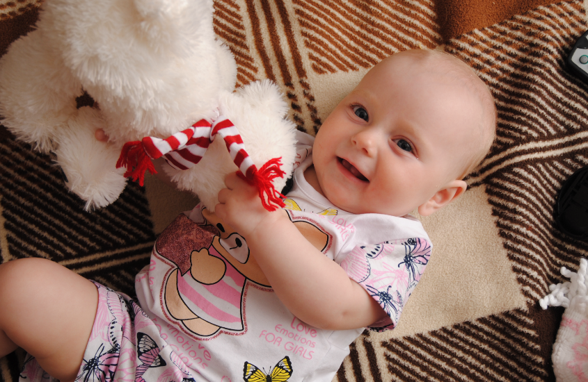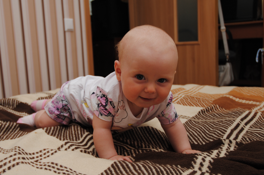 В розовых труселях планировалась постановочная фотка для отчета о семи мес. Но модель с улыбкой на лице быстро-быстро уползала из кадра. Засняла что успела))))