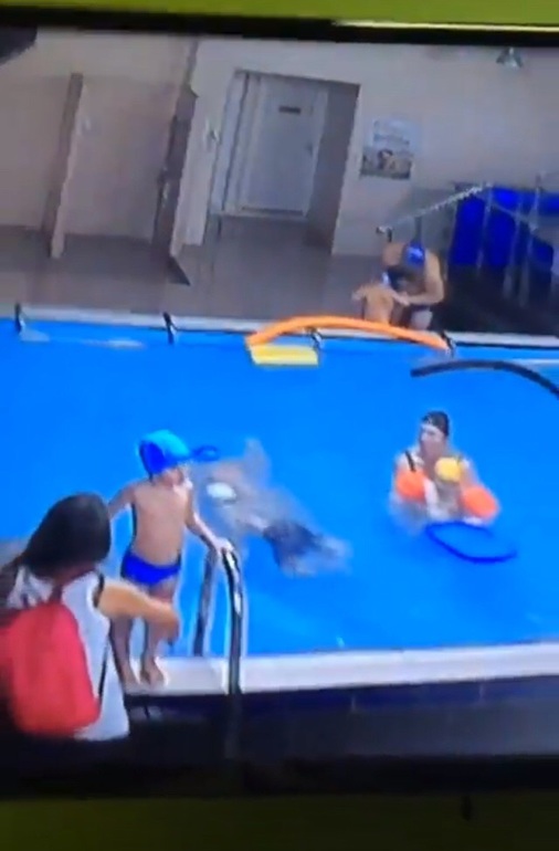(Фотка с телека наблюдения. Нырнул. Мы с Кириллом смотрим на тренеровкуи из коридора)