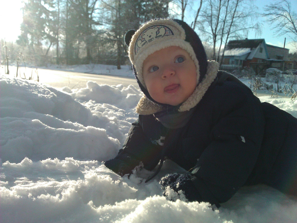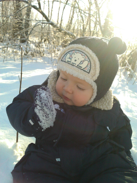 Вчера светило ярко сонце, и мы пошли на озеро, купаться в снегу )))