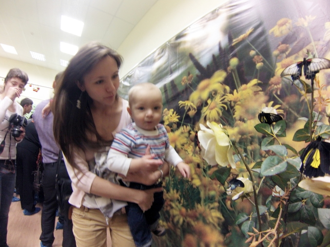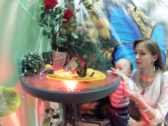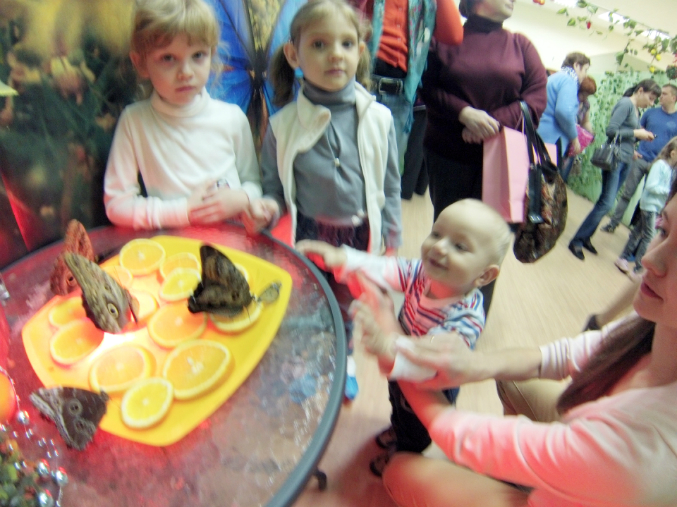 Держать его приходилось на руках в основном, т.к. бабочки преимощественно сидят высоко. Либо кушают апельсинки))