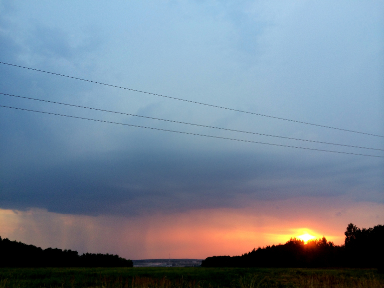 Молнии сверкали и приближались к нам, А нам нужно было двигаться навстречу грозе, чтобы уехать хотя бы с середины поля.... И мы помчались навстречу облаку - домой... Было жутко.. кто быстрее - мы на великах уедем с поля, или молнии доберутся до нас..