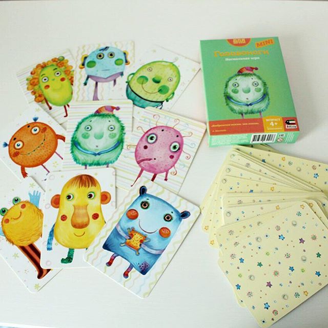 Наверняка все уже знают об этой игре. Я давно к ней присматривалась. Никита любит придумывать имена своим машинам, самолетам и т.д. Поэтому Головоноги ему очень понравились :) для тех, кто "отстал от жизни" или до нее еще "не дорос" и до сих пор не видел эти чудо-создания, расскажу как играть: из стопки карт снимаем верхнюю и кладем ее рядом так, чтоб всем был виден чудик. Если этот чудик попадается впервые - даем ему имя. Далее по кругу переворачивает карту следующий игрок. Если чудик повторяется - нужно выкрикнуть его имя. Кто первый правильно вспомнил имя, тот забирает колоду себе. :) все просто.