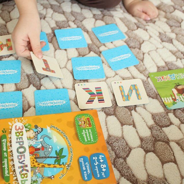 Обычно чтение у Никиты выглядит вот так: даю карточку со словом. На карточке написано "оса" и оса эта нарисована. Говорю - что написано? Он: "О....С...А.... -шмель!" Нет, говорю, читай снова. Он:"О...С...А.... Пчела!" Нет, говорю, читай побыстрее буквы и слушай себя, что получилось. "О..С..А.. Оса!!!!" :))) Именно на карточках этой игры Никита прочитал свое первое слово "лес" по тому же самому принципу. Вообще, он пока и буквы то не все знает.... И маме так лень их с ним изучать... Поэтому решила выкручиваться вот так! :) Игра отличная! По принципу Мемори - открываем букву, если она есть в карточке со словом, то открываем следующую. Если буква не встречается в слове - закрываем и ход переходит к другому игроку. Кто найдет последнюю букву - забирает карточку со словом к себе. и, кстати, заметила недавно, что Никита отлично делит слово по слогам! На слух. Этому его никто не учил. Четко говорит "ве-ло-си-пед ... 4 слога!" Или "ма-ши-на 3 слога" откуда? Непонятно ) буду наивно надеяться на врожденную грамотность:))) #НиКиНастольные_игры