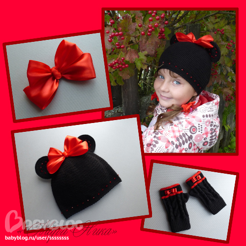 и вот, что получилось. Воображулька осталась очень довольна, тут же увидев готовую шапочку, нацепила ее (расцеловав меня) и понеслась хвастаться подругам. Фото на самой хозяйке нет. Хорошо что, перед этим поймала дочку и попросила ее попозировать, но удачных фотографий не получилось, т. к. шапуля ей велика.