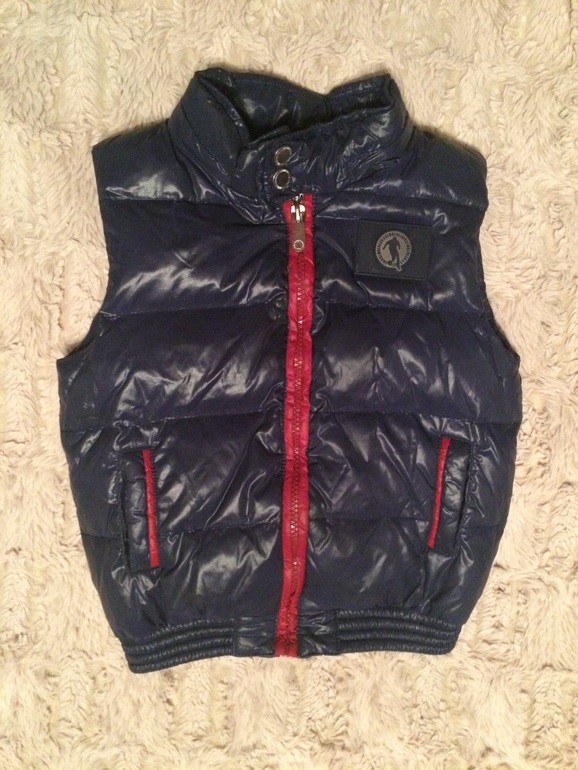1. Жилет Bikkembergs (наполнитель 80%пух, 20%перо), размер 36М (реально 2-4года). Состояние очень хорошее. Цена 2800 рублей.