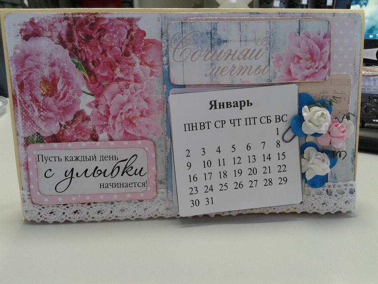 Сделала для себя настольный календарь... Решила сделать его с пользой поэтому с обратной стороны у меня еще и блок для записей....![]()