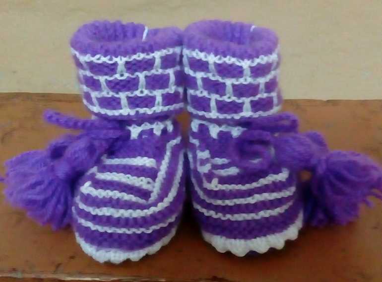 Правда они больше размером на 6 месяцев получились, поэтому она начала вязать поменьше. Сама я хоть и пыталась ещё лет в 10 учится шитью и вязанию, поняла что это не моё! Я лучше гайки в машине крутить буду 😀.