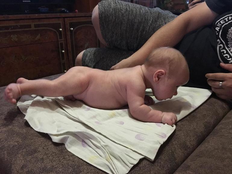 А вообще лежать на животе не любит, каждый раз возмущается...