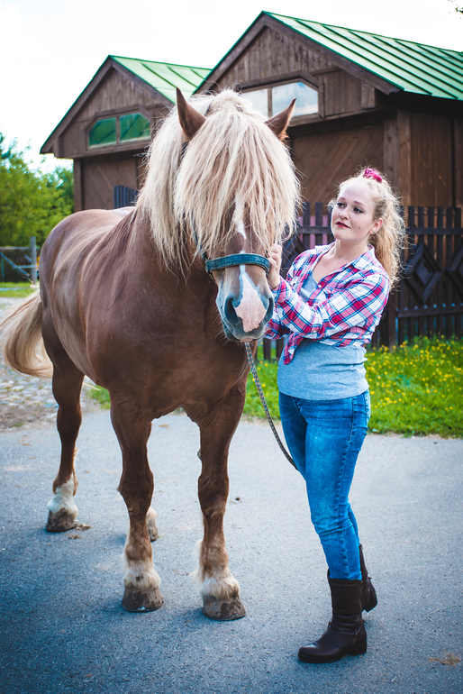 И тут бинго, конюх ведёт коня в стоило с прогулки, и мне пришлось раскрыть широко глаза, сделать губки бантиком и спросить - А можно нам сделать пару кадров? И что вы думаете, конечно же он не устоял перед всем этим, практически сам меня просил сделать пару кадров и даже с ним