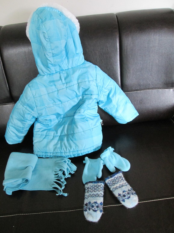 В комплекте : шарфик+ варежки осенние( в хорошем состоянии)+ варежки зимние (шерсть),( в отличном состоянии). Легко стирается, легкая курточка
