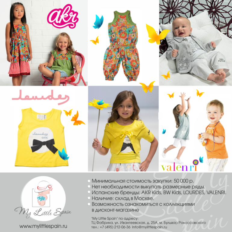 Испанские бренды: AKR Kids, BW Kids, LOURDES, VALENRI.