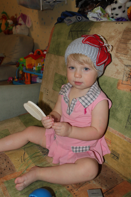 Кушаем сами, умываемся и чистим зубы сами. Горшок пока не идет, правда сегодня Алиска все таки чуть-чуть пописала в него. Постоянно снимаем трусики-подгузники. Пытаемся снимать колготки. На днях Алиска начала одевать сама домашнии сандали! И даже застегивает на липучку.