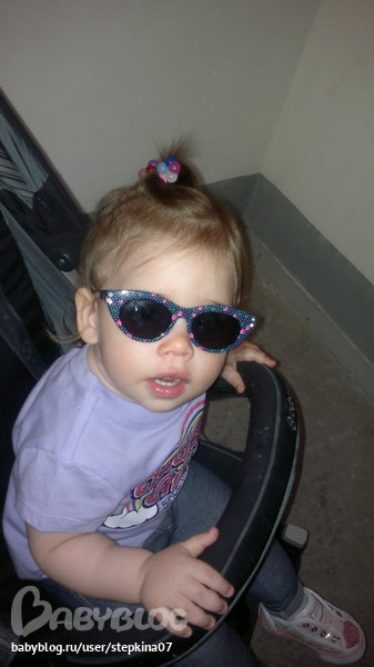 Из новенького- научилась на диван наконец-то залазить самостоятельно. И километры на улице наматывает, я за ней не успеваю. Песок поела, одуванчик. Мультик мне пересказала. Серия "Маша и медеведь" про прятки. "Мама, ляля, а-а-а (мишка), руками глаза закрывает". Из новых слов "тай" - чай. И пары "слов" составляет - типа "баба-де", "папа-мама", "ням-пу" (и так раз по 15 ). Носки на себя одевать любит. Иногда по два на одну ногу. Умывается сама и зубы чистит (выглядит все крайне смешно). Кашу утром сама ест (правда вся в каше - но довольная, и все съедает, что положишь).