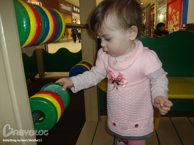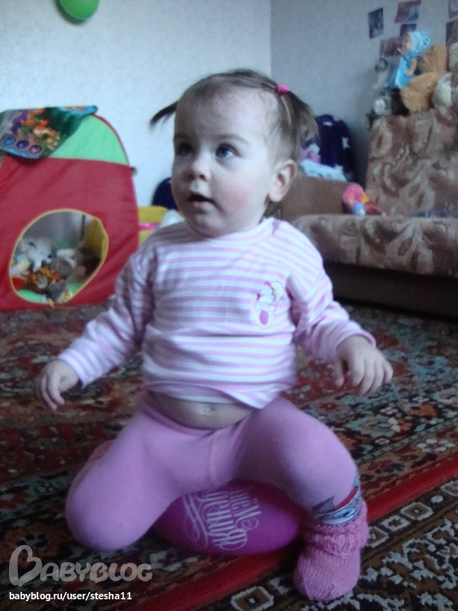 Ну подведём итоги что мы на сегодня умеем))) Говирить пока не хочет,но я не заморачиваюсь,придёт время - не остановишь)) Говорит только на своём таробарском языке,на сегодня любимые слова это "батика-батика" и "кать-кать",только вот что это такое - для всех загадка! ходит порой без умолку твердит)) а так ещё говорит "ням-ням","отдай","дай","ав"(собачка),"ам"(лев),"ко-ко" ну и слова папа,мама,баба крайне редко. Иногда разово какое слово у неё промелькнёт типо "ди!" - это "уйди", "то эть?" - это кто это,"кебаб"(колобок). Зато понимает меня полностью,выполняет все просьбы,только конечно если психи не найдут на неё)))Предметы все почти хорошо знает,когда просишь её что-то принести,то часто делает это безошибочно. Сейчас приучаемся писить на горшок,какаем только туда месяцев с 8. Пока процесс приучения идёт хорошо. Когда спросишь "Пошли писить на горшочек?",то Стеф сразу бежит в ванну,там у нас находится горшок. Сегодня сама начала пытаться садиться на него,что получилось почти сразу)) Утром сидела играла,потом резко сорвалась и побежала в ванну,достала его,поставила и смотрит на меня. я обалдела даже, что ребёнок САМ пошёл без напоминаний как только захтел в туалет))) Ещё очень любит целовать всех,так забавно прямо)) С каждым днём становится более самостоятельная,подолгу может сама играть, в последнее время любит собирать кубики,строит из 4х-5ти башню спокойно. Есть любимые куклы,на которых она сверху заваливается и целует.Также очень любит смотреть книги - это одна из её любимых игрушек. Кушает всё,только мясо в последнее время стала чуть хуже есть. Смесь на ночь с месяц назад отказалась пить,теперь мы просто плотно вечером кушаем,а ночью пьём чаи и компоты,за одну ночь бывает 3 или 4 бутылочки в 130 мл. Ещё хорошая новость,мы наконец стали кушать по утрам каши!! уже недели 2-3! сначала покупали малютку с 12 мес. а потом я ей стала сама варить на молоке. раньше мои каши она ни в какую не ела,а теперь с удовольствием!)) А ещё на днях мне помогала со стиркой. Сама она закидывает свои штанишки,рубашки в машинку и потом помогает развешивать. я разложу вещи на край ванны,сама встану у верёвок, и доча носит мне вещи))вот такая мамина помощница!