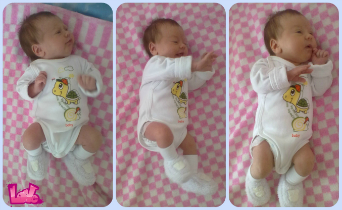 Вот она наша первая,хоть и не крупная,дата!)) Растёт наш хомячок! прибавили за месяц 1300 и выросли на 3см.Всё бы хорошо,но вот проблемы с животиком нас мучают,эспумизан и бейби калм не помогают,приходится вручную ей помогать газики выпускать,после этой процедуры хоть как-то легче становится...Время очень быстро летит,так что скоро мы и не вспомним что такое "колики")) Уже улыбаемся,впервые она улыбнулась во сне впервую ночь после рождения! последние денёчки стала замечать,что Танюха стала изредка улыбаться уже во время бодрствования)) Старшенькая всё так же ревнует,пытается отвлечь меня всемя возможными способами только чтобы я сестрёнку на руки не брала. а особенно что творится когда начинаю кормить её,то Стеша пытается залезть на меня или нашкодить!Иногда начинается дикая истерика,доходящая до демонтстративного разбивания игрушек. вот такие на сегодня у нас новости)) ну и естественно фото Танюшки: