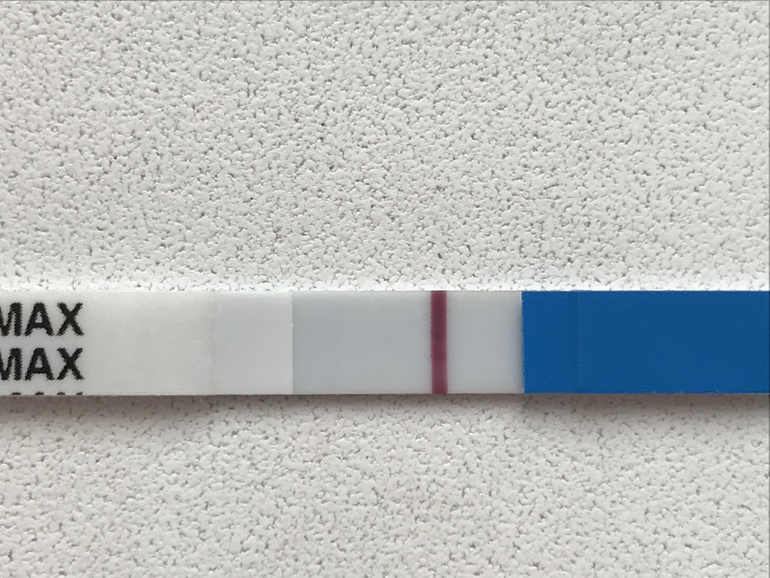 При наличии Б даже тест за 2 копейки ее покажет. Тут нечего высматривать, конкретно на этом тесте нет никаких полосок, есть белая полоска, по двум краям прадеды реагента. Увы