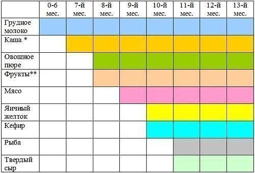 До 6-ти месяцев ребенок находится исключительно на грудном вскармливании. Во втором полугодии жизни твердая пища значимо дополняет грудное молоко, но не является основой рациона ребенка.