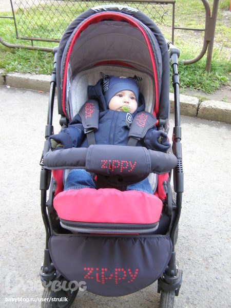 Я просто балдею от этой коляски! У нас тоже зипуша красная)))) И в автолюльке любим передвигаться, а в машине так вообще балдёж и спит хорошо. Прогулку тоже переставили, а вот возможности не было еще прогуляться, погода ужасная. Вчера выезжали, так брали трость макларен, в ней тоже любит кататься))))