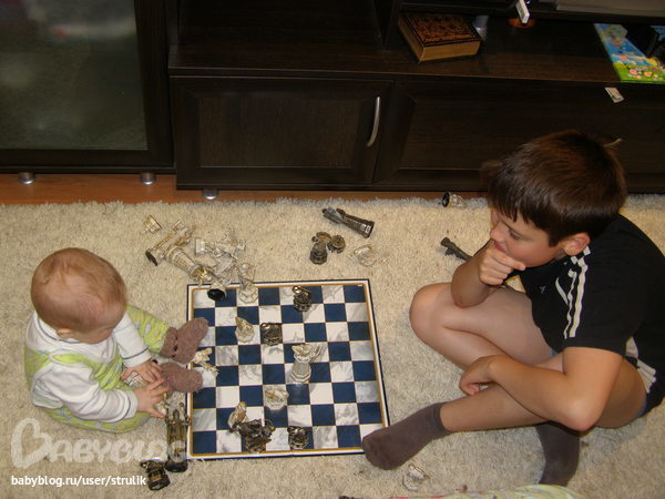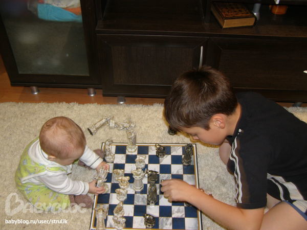 Ольга 13 лет А мы уже... ... в шахматы играем Посмотрите еще 20 записей на эту тему Отменить Ответить Евгения Гений!!!)))) Есть с кого пример брать! 18.09.2012 Ответить Ольга Спасибо, Женечка! Да, старший у нас "примеристый" 18.09.2012 Ответить Elena Вау как здорово! 18.09.2012 Ответить Ирина Такой деловуха сидит )))) классный какой)) 17.09.2012 Ответить Катрин Классные ребята! :-) фото номер 2 самое суперское 17.09.2012 Ответить Екатерина ого,уже сидит так хорошо)молодец малыш!))) 17.09.2012 Ответить Ольга Спасибо! Он сам еще не садится, а еслипосадишь, не долго сидит, заваливается. Зато мы уже ползаем. 17.09.2012 Ответить Екатерина ну все равно!А у меня Дашка сразу валится)))но я правда оч-оч редко ее присаживаю,рано нам еще) 17.09.2012 Ответить Ольга Да, девочек рано сажать нельзя, а нам то уже почти шесть месяцев. Старший у меня уже сидел в этом возрасте, но не ползал еще. 17.09.2012 Ответить Evgeniya это просто чудо))))) и вы так уже сидите хорошо) умнички))))) братишка научит в шахматы играть))))) 17.09.2012 Ответить Ольга Спасибо! На самом деле мы еще плохо сидим, заваливается, как мешочек. А братишка, еще тот шахматист. 17.09.2012 Ответить У Фила новый друг Теперь глаз, да глаз... Чаты Беременных Выберите чат: Январята-2026 Февралята-2026 Мартята-2026 Апрелята-2026 Майчата-2026 Июнята-2026 Июлята-2026 Августята-2026