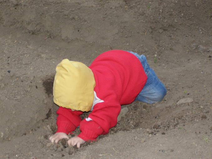 Ого!!!Ну вы смелые!Малыш не налопался земли???А мы то в песочницу идти боимся...)