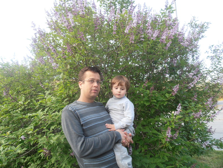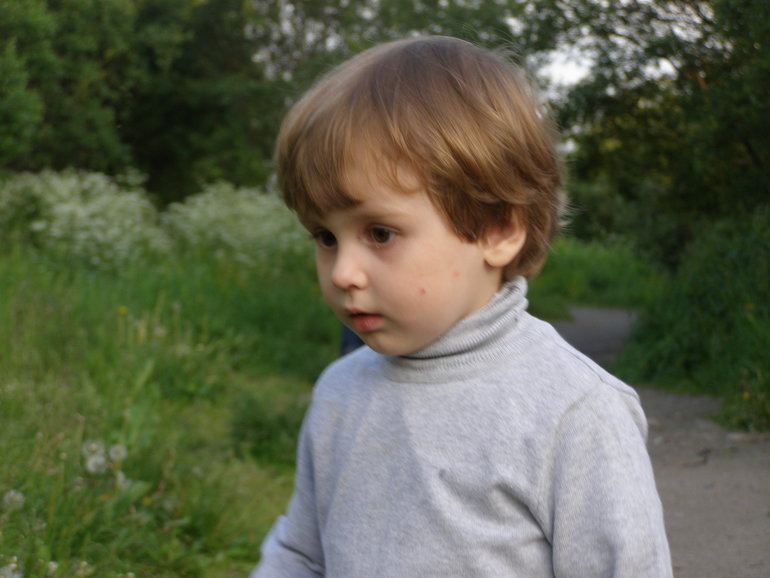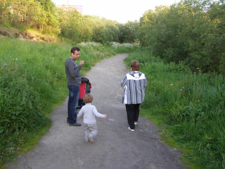 Пошли на прогулку уже с папой вечером: