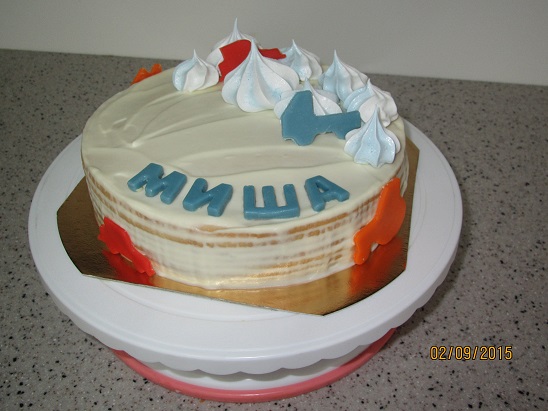2) кремовый и сверху фигурки машинок , или одной машинки + растяжка может быть