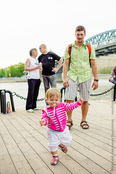 Конечно я очень боялась, что муж просто за ней не поспеет и Соня может улететь с набережной в воду, но всё обошлось=) Кстати Сонечка посмотрела на танцующие пары и сама пустилась в пляс=) Это было не просто забавно, а очень ржачно! Она видимо пыталась встать на мостик и каждый раз не понимала, почему у нее не получается?=)