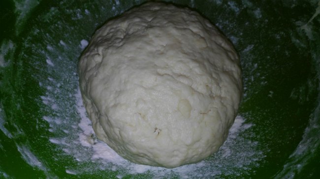 Скатать тесто в шар, завернуть в пищевую пленку и убрать в холодильник на полчаса.