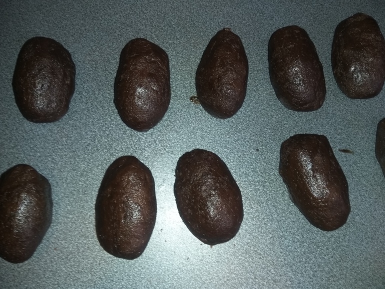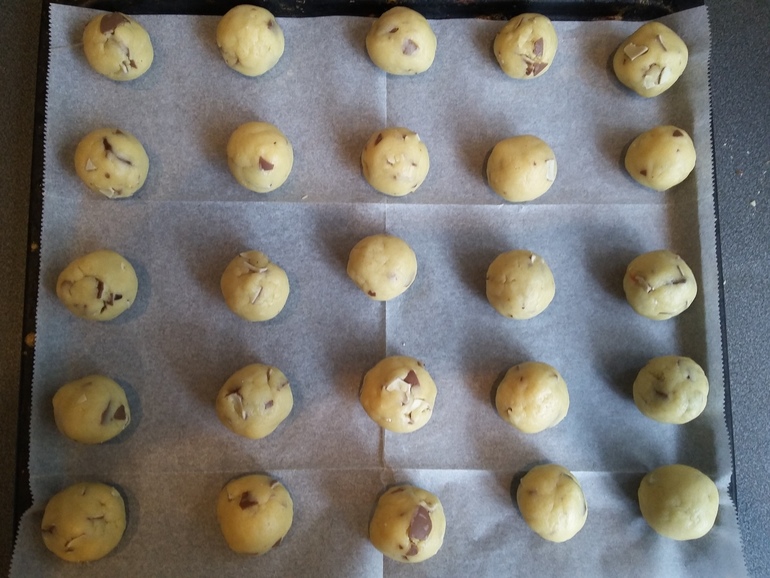 Скатать шарики размером с грецкий орех. Разложить на противне: