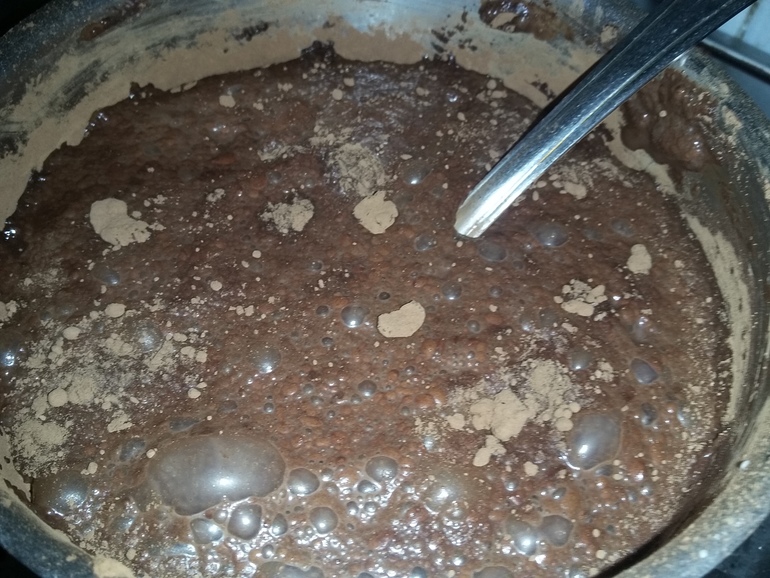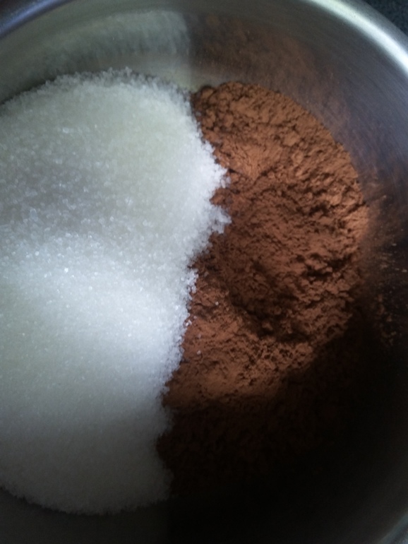 Смешать 3 ст.л. какао и ст.л. сахара: