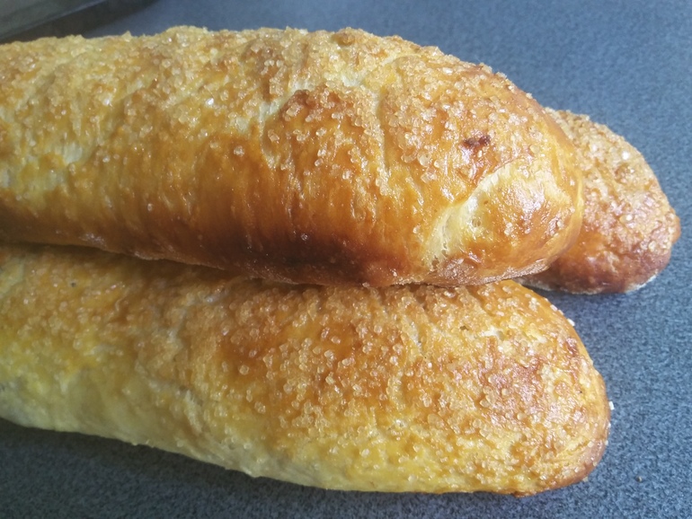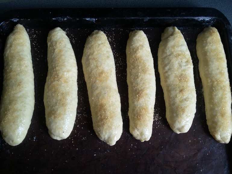 Дать подойти. Смазать разбитым яйцом, посыпать коричневым сахаром: