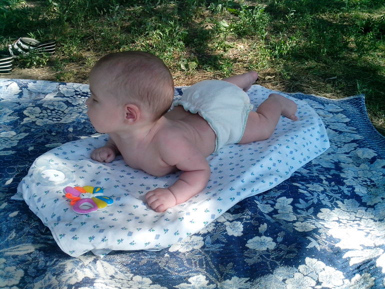 А любимой игрушкой стала жёлтая клеенка - сдирает сверху нее лежащую пелёнку и ну давай её обсасывать, мусолить и глодать. Еле получается отнять, силища такая)