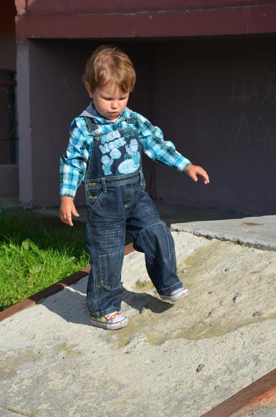 нам так понравился, что носили размеры 92 (на первом и последнем фото), 104 (на втором и третьем фото ) потертости родные
