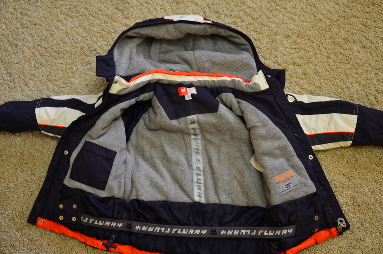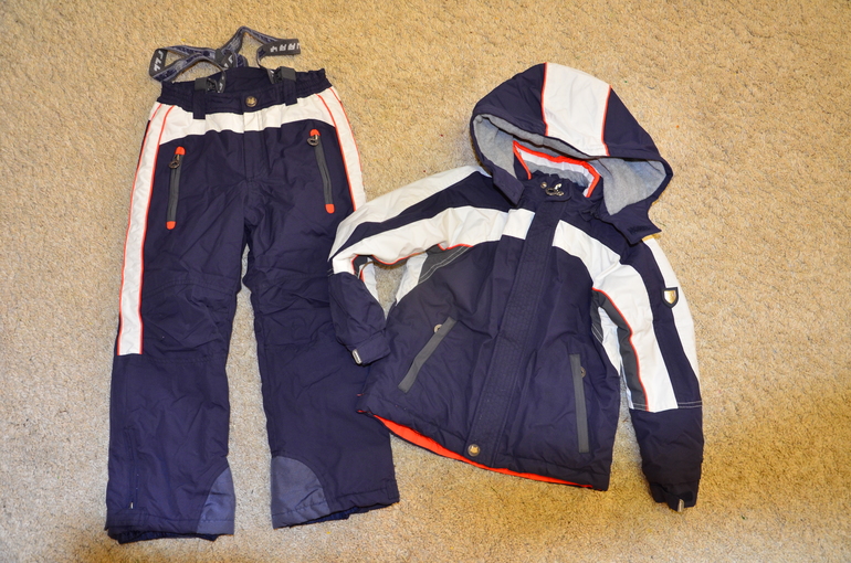 комплект в идеальном состоянии, очень теплый. Рост 116, носить можно со 110 и до 122. В комплекте варежки.