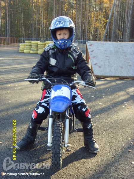 Это наш средний- Кирюшка. С четырех лет занимаемся мини-футболом, игрок детского отделения команды "Газпром-Югра", а мотокроссом занялись случайно-старший брат занимается, и этого за компанию отдали. На первых же окружных соревнованиях- второе место!!!