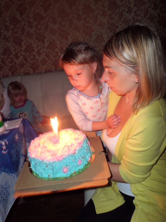 В субботу пошли в детский клуб с ее друзьями, а потом вечером приехали взрослые друзья и гуляли до ночи. Василиска загадала задувая свечу салют)))).
