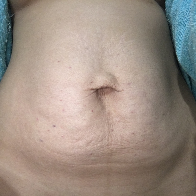 Фото сделано после душа, вечером, перед сном. Как видите, отек сошёл, остались лишь красные точки от уколов.