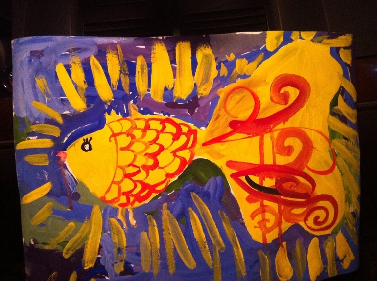 Сонечка очень любит рисовать. Рисует везде: дома, в гостях, в машине, в садике.. Стали ходить так же в художественную школу. Очень нравиться. Делают там поделки, рисуют на мольбертах.