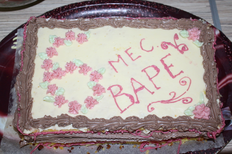Вот такой чудесный тортик я испекла на полгода дочке Варе.Бисквит из 12 яиц с масляным кремом.