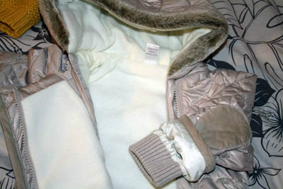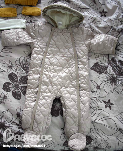 Про размеры. Брали комбинезон демисезонный и пижамку размера 74-80 см, и шапку с царапками 68-80 см.