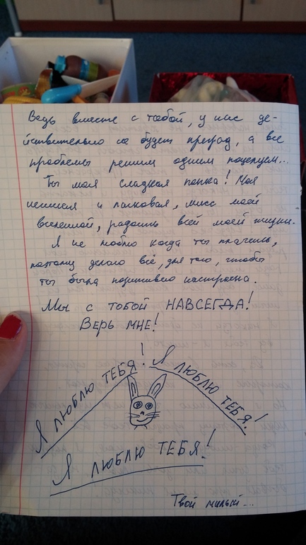 Помню лет 7-8 назад мы с мужем (тогда нще не муж) решили написать друг другу письма. Сижу у родиьелей, ковыряюсь в ящике с игрушками и нахожу пакет😊 п в нем открытака старая и то самоеписьмо!!! Как же приятно было его читать спустя столько лет..вот девочки, делюсь с вами)))