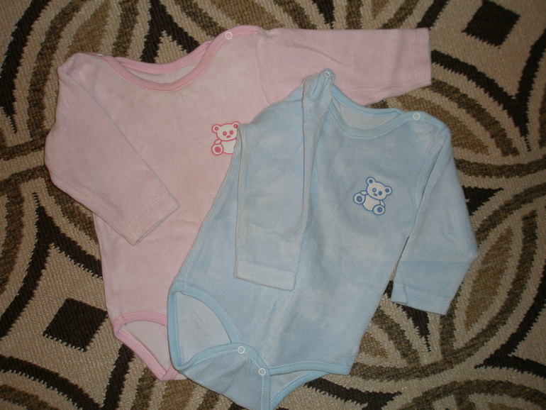 - Бодик с длинным рукавом, вельвет, теплый, с апликацией (68-74р.), розовый и голубой (2 шт.)