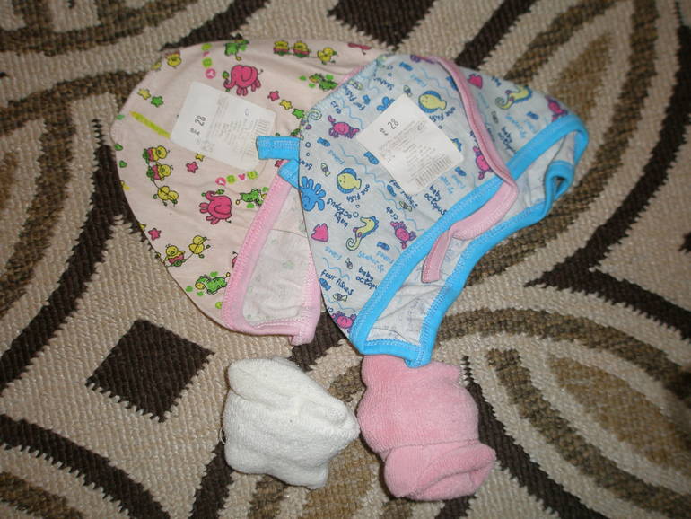 - шапочка (гдето от 5 мес.), розовая и голубая (2 шт.) НОВЫЕ