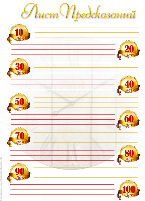 Из развлечений Лист предсказаний ( каждый гость напишет свое предсказание на каждое десятилетие Артема)