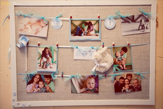 В типографии распечатаю Темочкины фотграфии на плотной бумаге ( размер А4) и сделаю из них растяжку на цветных прищепках. (фото ниже)